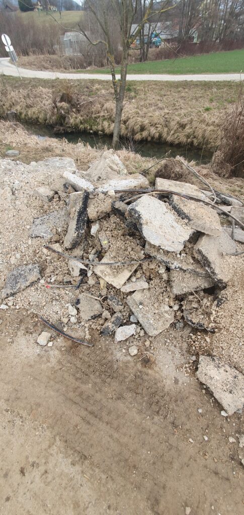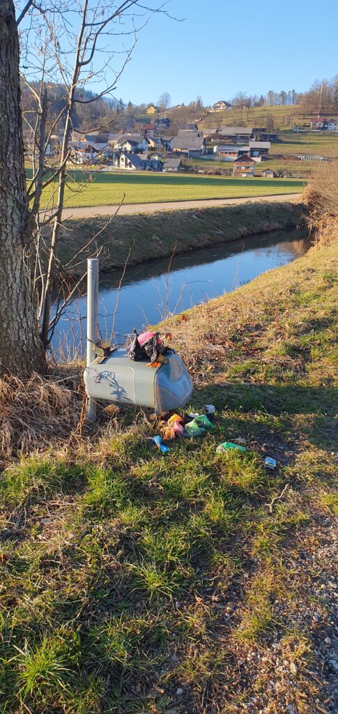 Sliko, ki prikazuje kako je okno lepljeno s selotejpom, si lahko ogledate spodaj. Prav tako sliko odpadkov pri brvi. Pa tudi dneve in dneve ne izpraznjenih košev za smeti. Občani mi pošiljajo in prosijo, da naj objavim.