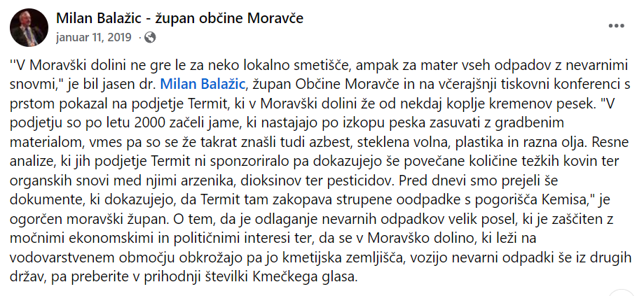 (spodaj na ogled vsebina objave VIR:FB Milan Balažic-župan občine Moravče)