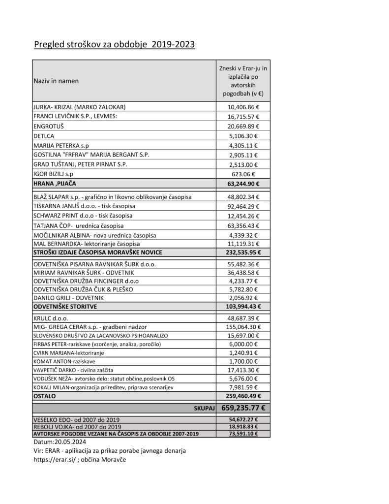 Na zadnjem zasedanju občinskega sveta me je župan obtožil, da na spletni strani moravce.net objavljam nepravilne podatke. Zanimivo, ko pa objavim prav tiste dokumente, ki jih prejmem od Občine same.