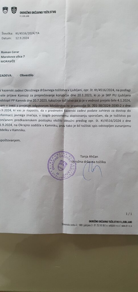 Primer Varuha občanovih pravic Ravnikar Staneta tožilstvo poslalo na okrajno sodišče v Kamnik
