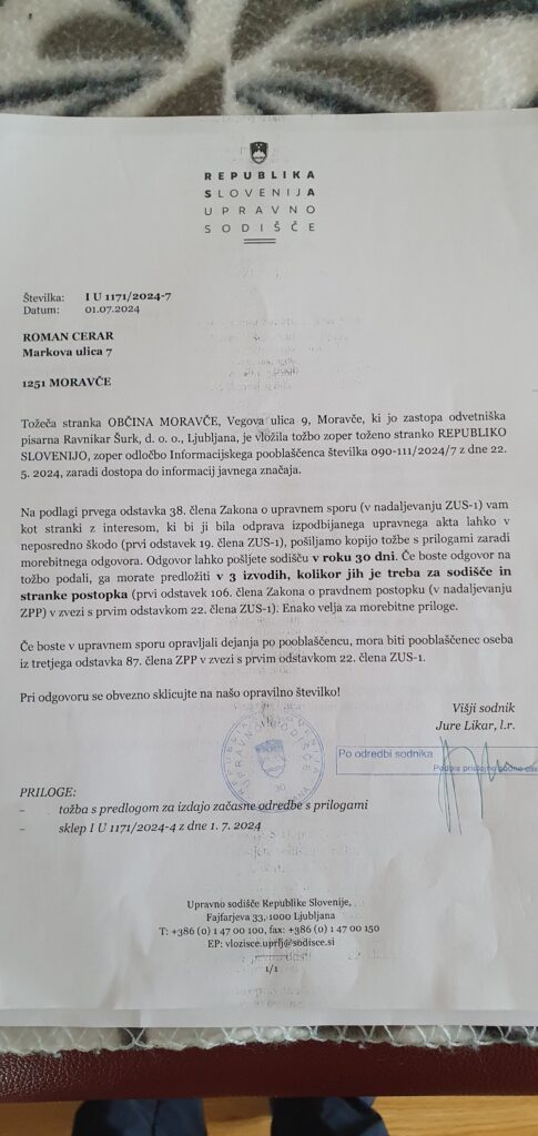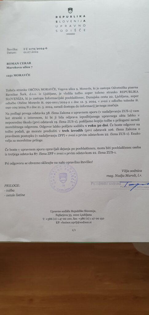 Da pa zabave ne zmanjka, je župan našel še en trik: ko je Informacijski pooblaščenec zahteval izročitev računov okoliških gostinskih lokalov, trgovine TUŠ in dokumentov o mešetarjenju pri STARI RAŠICI, je župan Milan Balažic raje vložil dve tožbi (spodaj na ogled). Logika po Moravško: čim bolj skrij in potem toži vsakogar, ki si drzne pogledati pod tvoje prste. Stroški? Ah, saj veste, kdo bo plačal – vi, občani!